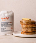 Our small batch, fermented Buttermilk Crumpets are a delicious twist on a classic. Made the traditional way with a slow-fermented sourdough base and locally crafted Pepe Saya buttermilk.
